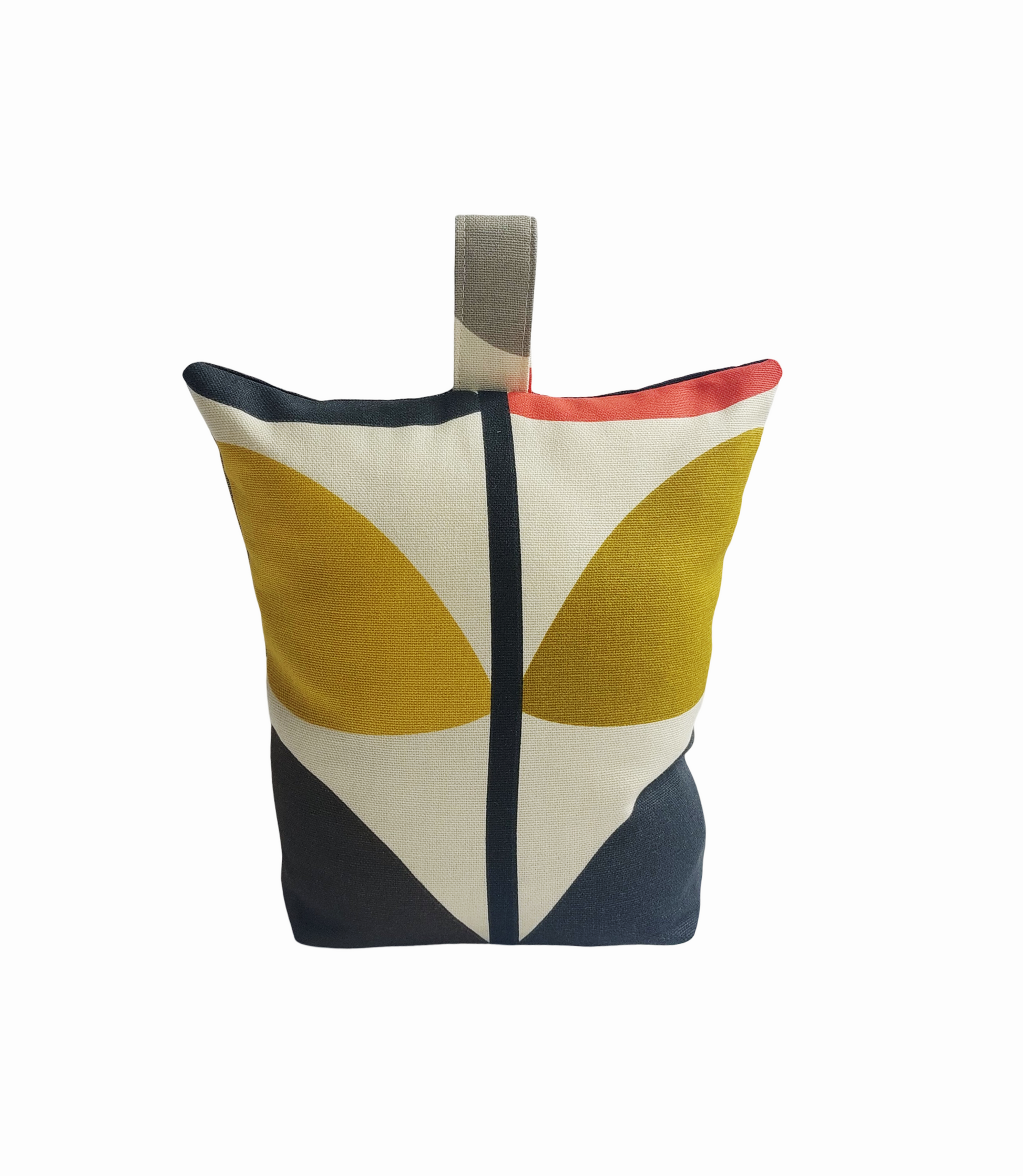Composition: Stem print fabric front and back with concealed zip at the base and tab at the top. Door stop is weighted with a sealed bag filled with 1.5 kg of sand and super microfibre polyester wadding. Contact me for custom size inserts, please note for anything exceeding 2kg postage cost may increase marginally.